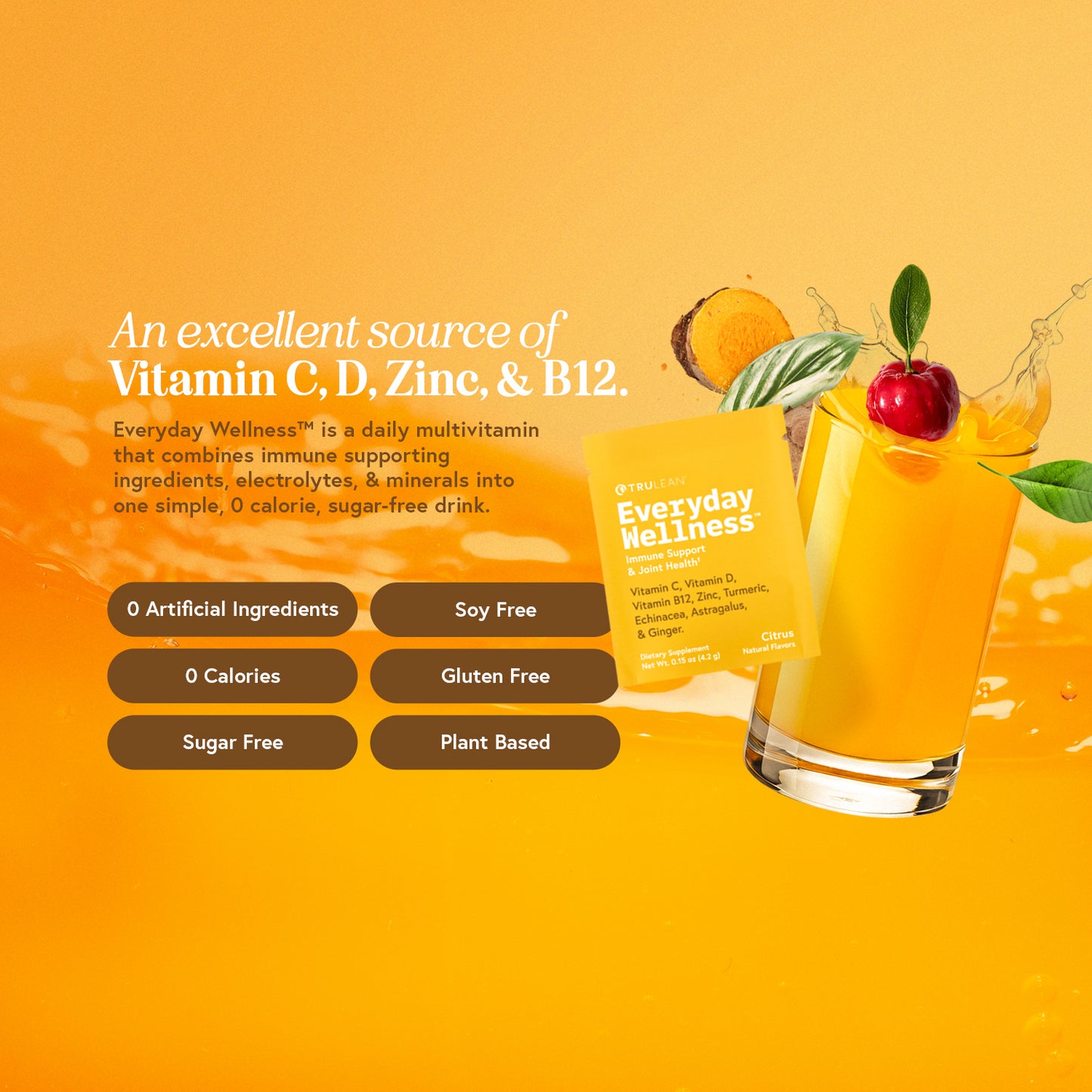 Everyday Wellness™ is a daily multivitamin that combines immune-supporting ingredients, electrolytes, and minerals into one simple, 0 calorie, sugar-free drink.