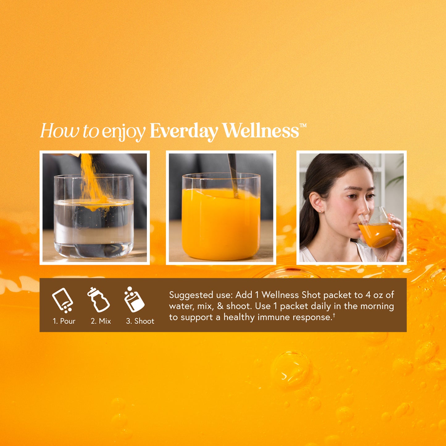 Suggested use: Add 1 Wellness Shot packet to 4 oz of water, mix, & shoot.
