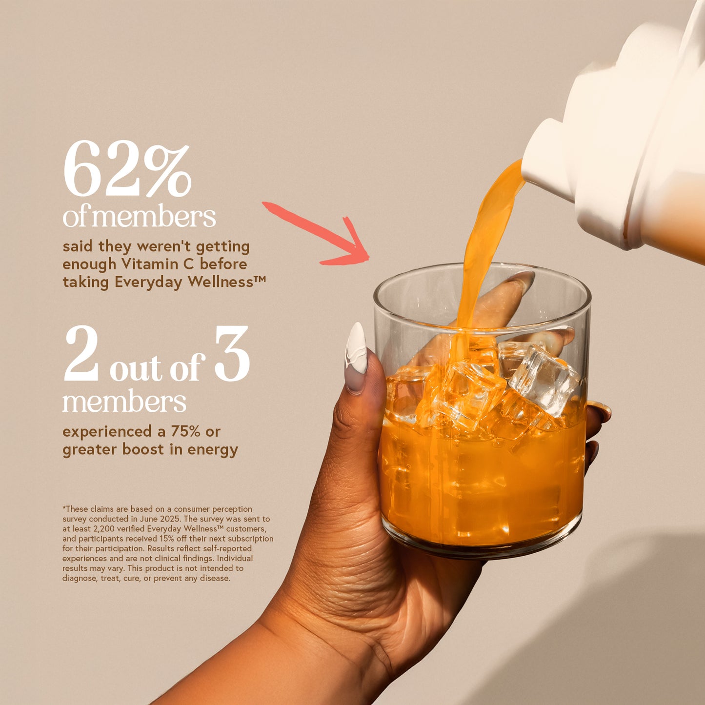 *These claims are based on a consumer perception survey conducted in June 2025. The survey was sent to at least 2,200 verified Everyday Wellness™ customers, and participants received 15% off their next subscription for their participation. Results reflect self-reported experiences and are not clinical findings. Individual results may vary. This product is not intended to diagnose, treat, cure, or prevent any disease.